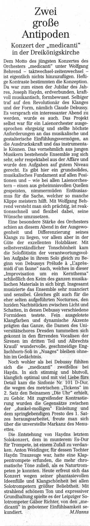 Anlass: Konzert in der Dreikönigskirche am 14.06.2009